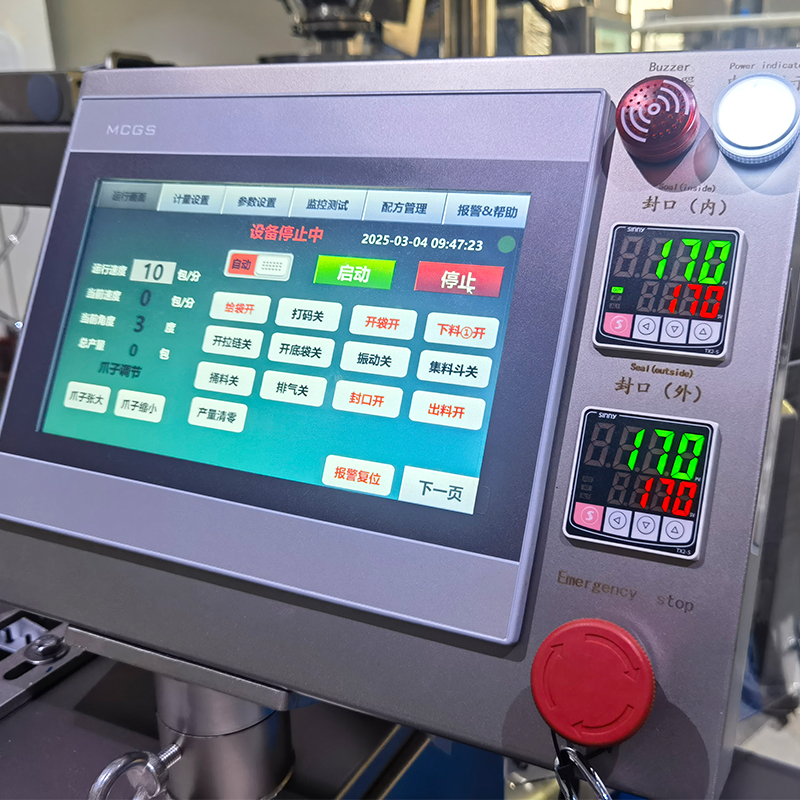 2、智能:采用PLC触摸屏设置包装过程,可在显示屏幕当中设置包装速度、容量、封口等参数,便能够全自动化执行生产。
