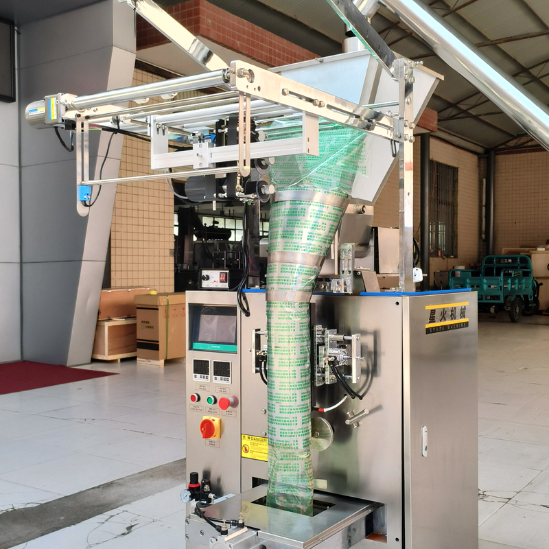 这款大袋金属粉末定量包装机配置自动上料机,加料更便捷,适用于铝粉、铜粉、铁粉、铝粉、铜粉、铁粉、镍粉、钛粉及合金粉末产品,化工粉末物料的自动包装,粉尘小,精度高,同样可用于调味粉、辣椒面、蛋白粉、烧烤料等物粉末产品的包装,是一款集自动制袋包装、自动上料称重的立式包装机。本机采用PLC控制系统,大屏幕显示屏,功能多,操作方便。该机支持1-5斤的包装规格,能适应多种包装需求,自动上料包装机由一台立式包装机和一台自动上料机组成,集自动上料、制袋、称重、充填、封口、打孔等功能于一体,利用卷膜自动成型制袋,封闭式包装,粉尘小,非常好用。