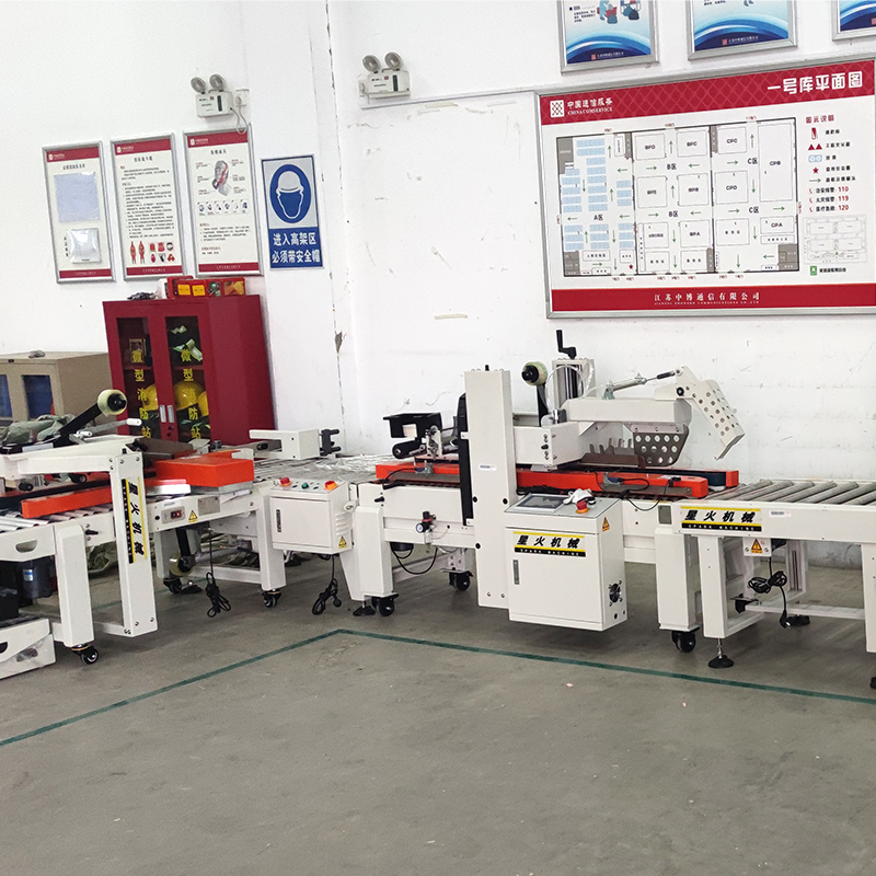 1、多功能:直线式封箱机械可以完成简单的一字型封箱,还可以与角边封箱机组合,实现“工”字型封箱操作,以此满足电商所需纸箱缝合的包装要求。