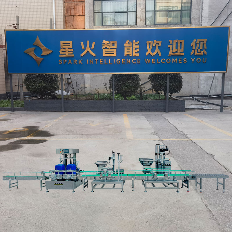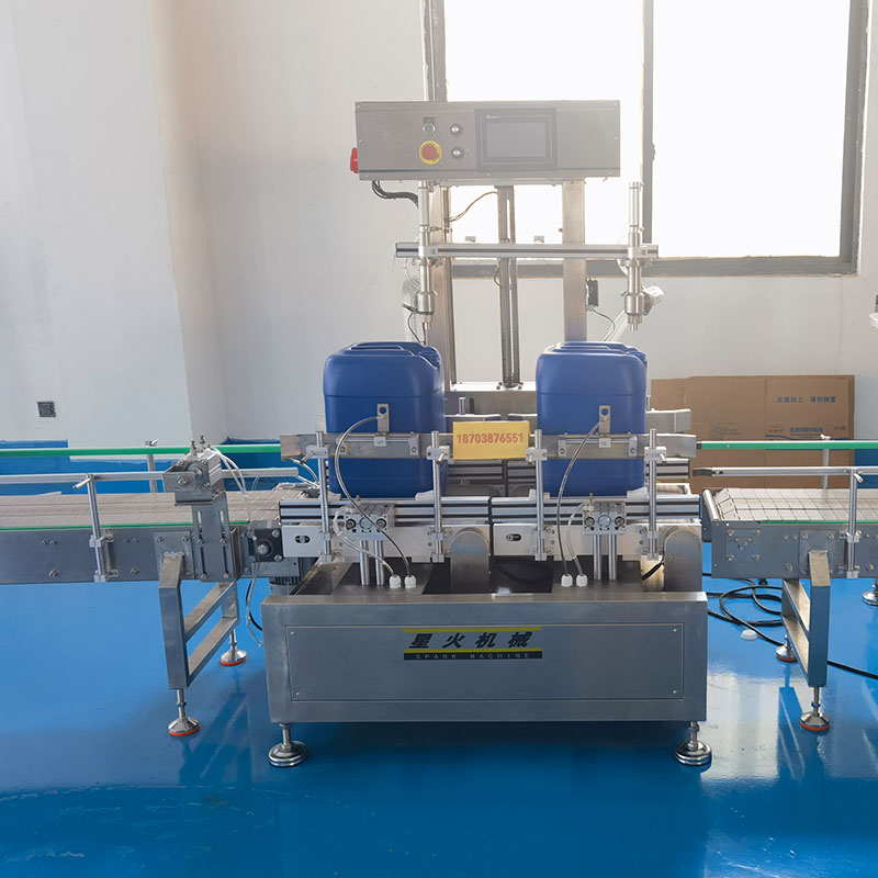 全自动液体称重灌装机在化工、医药、食品、农业、建筑、化妆品等行业当中,大桶物料的灌装工作对灌装精度和生产效率无法做到兼备的状态。全自动称重灌装机作为当下星火智能设备的前沿机械设备,它融合了高精密机械称重感应技术和电子传感控制的多重保护,能够对5-30公斤的液体、膏体物料提供高精度的灌装工作。双头定量灌装旋盖生产线以整套自动化机械设备的联动操控,保障了大桶物料的高难度生产模式。