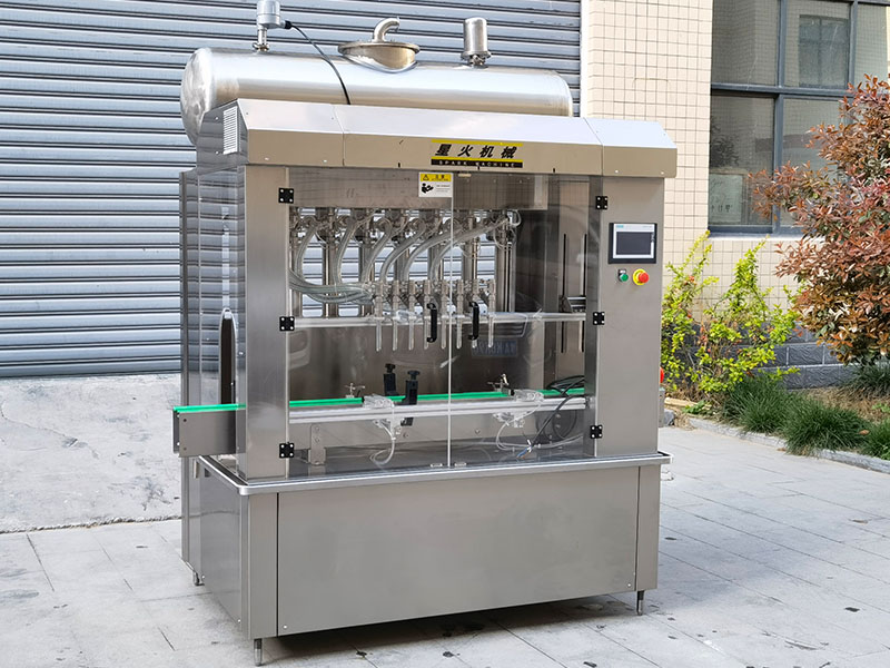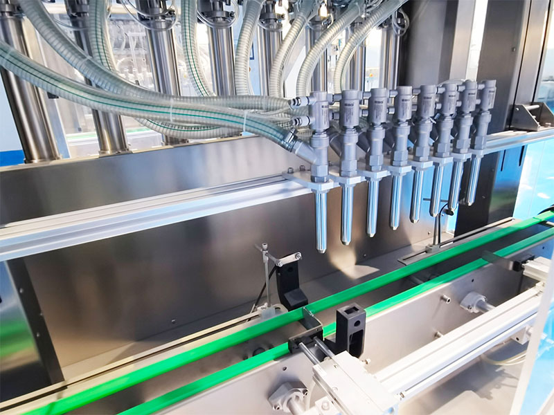 4、灌装方式:该设备配备了多个灌装阀,在经过标准的参数设定后,多个灌装头能够同时对准与灌装头相等的容器口径进行充填运动。