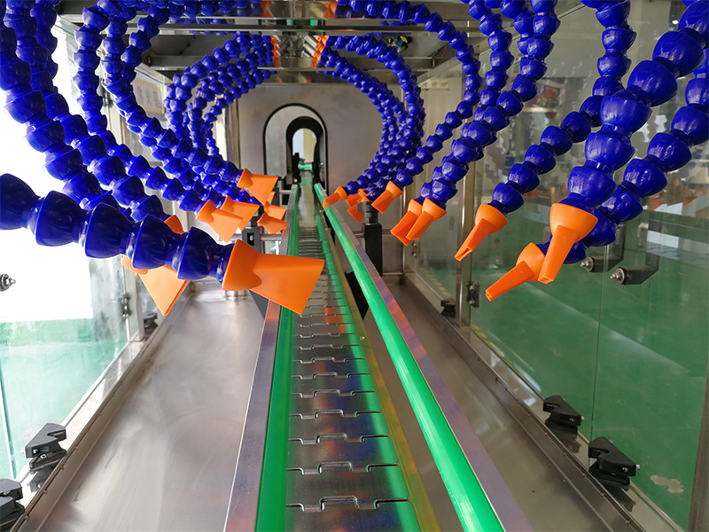 杀菌吹瓶:空瓶进入全自动空罐杀菌吹扫机,进行清洁和杀菌处理。