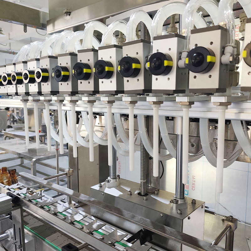 12头防腐蚀液体灌装机各类具有腐蚀性、低粘度或对设备材质有特殊要求的液体物料的自动化灌装作业。涵盖日化、医药、食品、化工、农业及特殊行业,具体包括:酸碱溶液、甲醇、乙醇、表面活性剂溶液、催化剂溶液、化工溶剂、化学试剂、标准缓冲溶液、盐酸、油墨、药液、碘伏、酒精、消毒液、营养液、洗洁精、沐浴露、化妆品原料液,以及除草剂、草甘膦、杀虫剂等农药等有腐蚀性流动性强的液体。